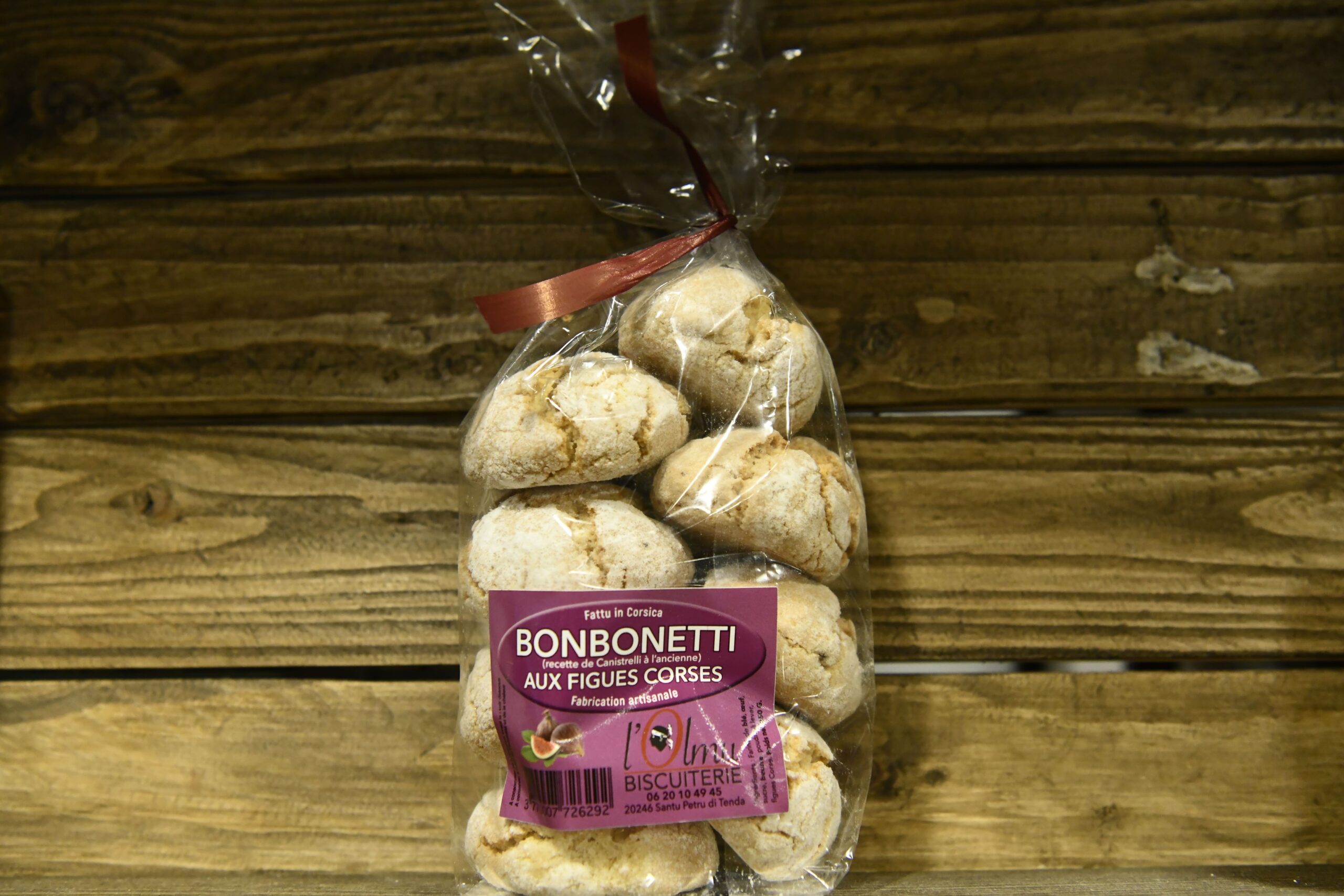 Les bonbonetti  figues corse de la biscuiterie l’Olmu sont des gateaux secs emblématiques qui mettent à l’honneur la figue corse.